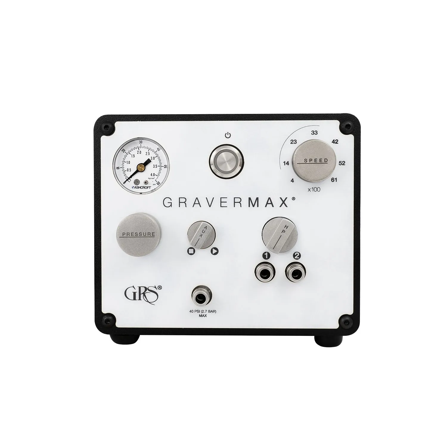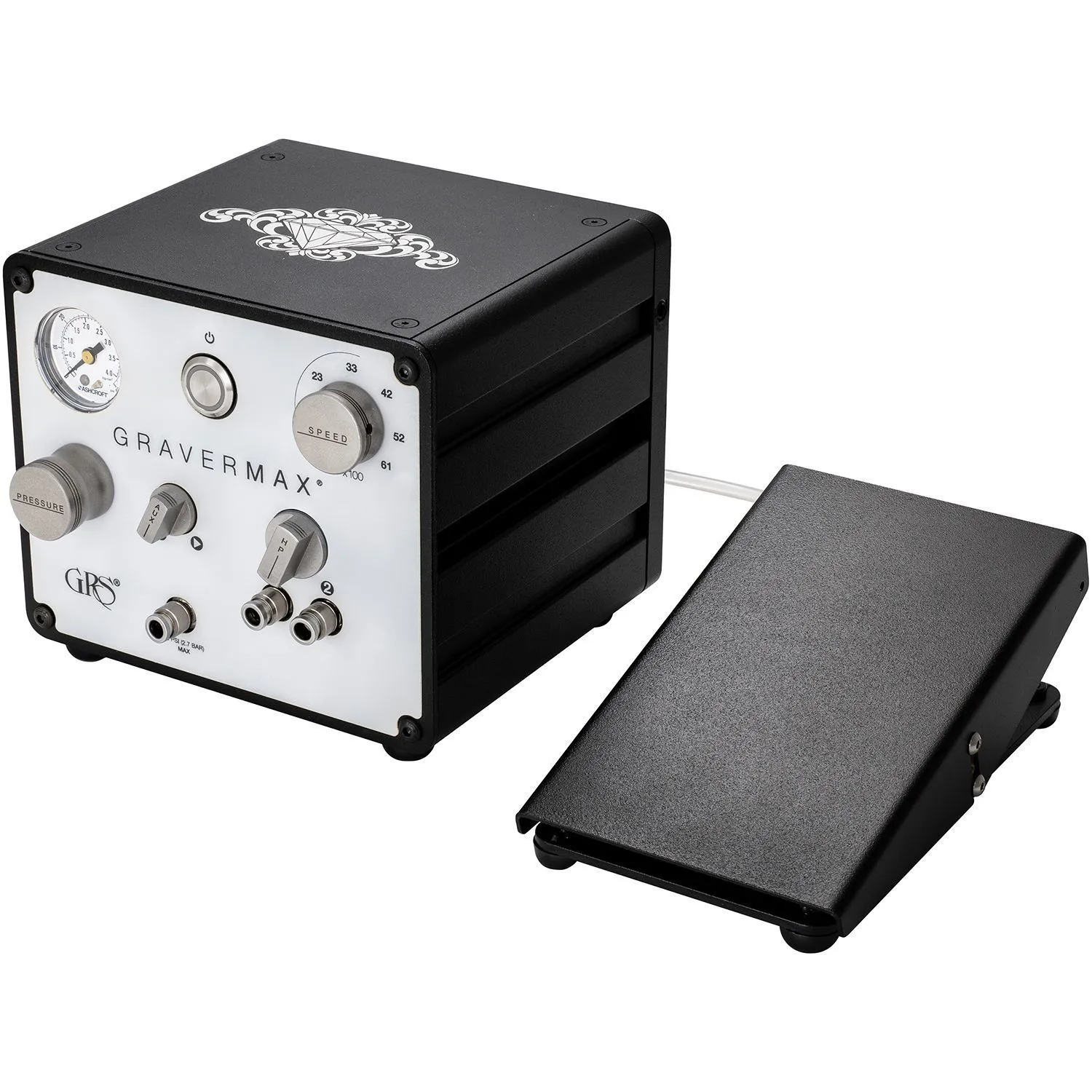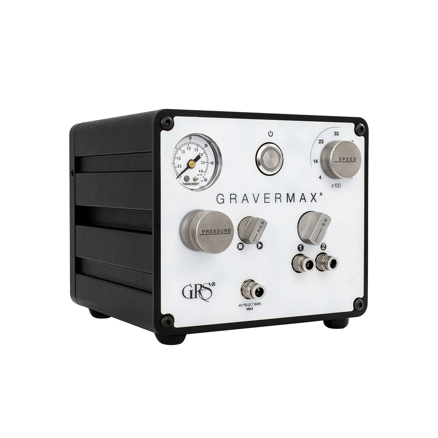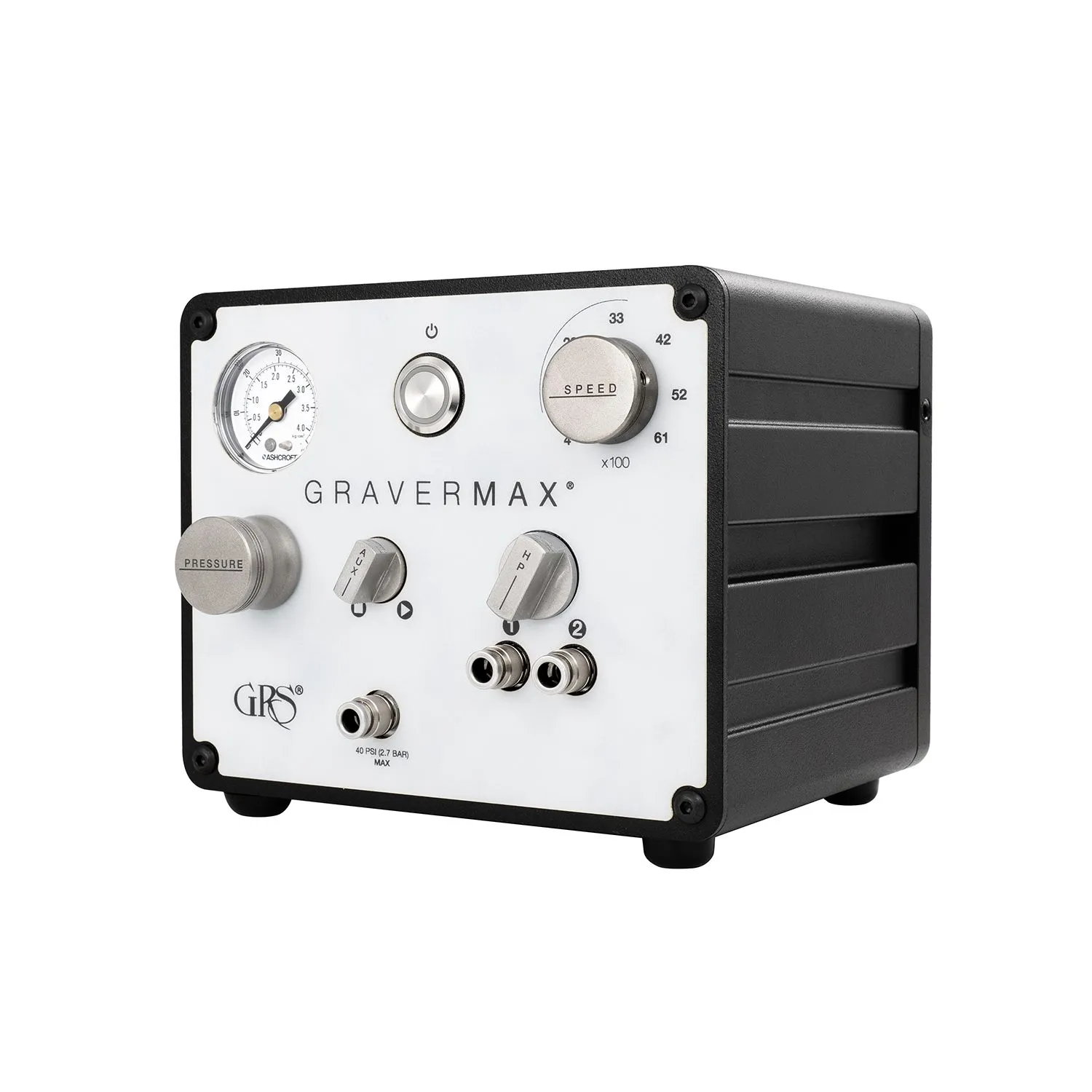 GraverMax® от американского бренда GRS — профессиональная пневматическая система для гравировки и закрепки камней, признанная эталоном в ювелирной индустрии. Этот надежный инструмент обеспечивает значительное увеличение мощности при сохранении плавного пуска, что критически важно для прецизионной резки по золоту, серебру и другим металлам.